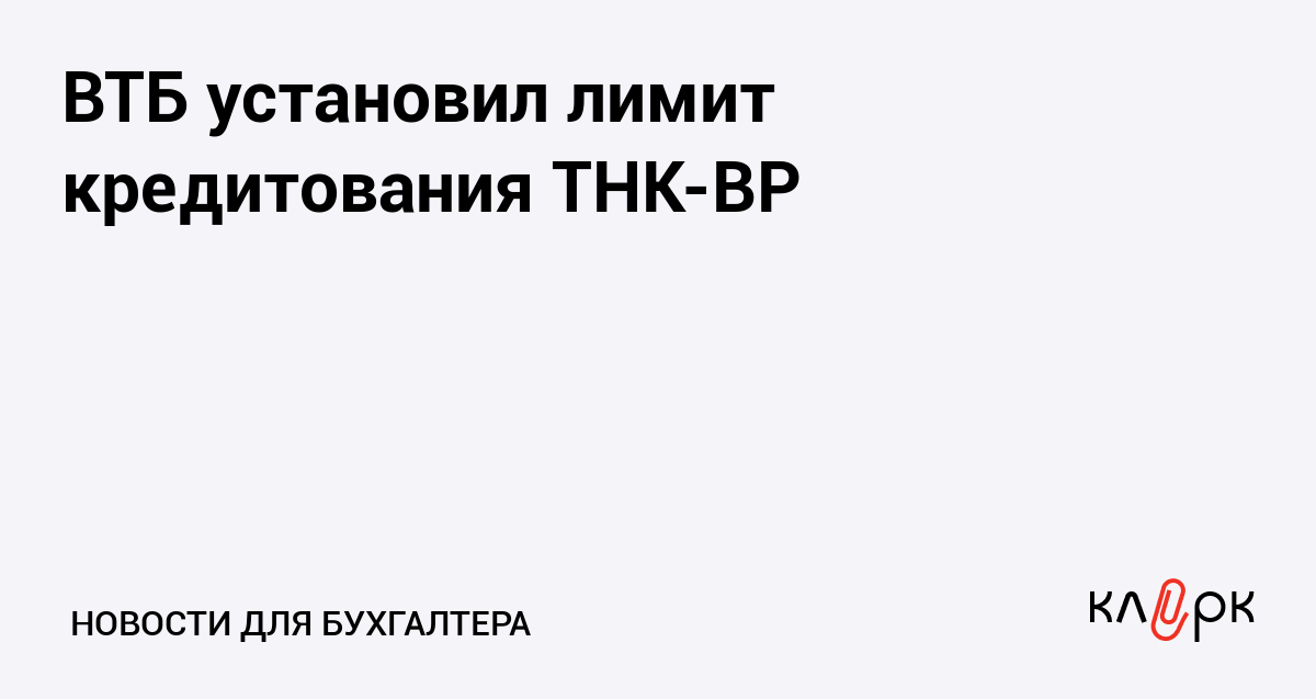 ВТБ установил лимит кредитования ТНК-BP