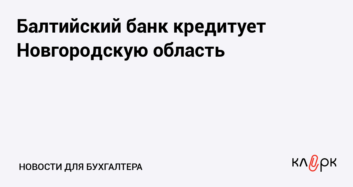 Балтийский Банк заключил государственный контракт и предоставил кредит администрации Новгородской области.
