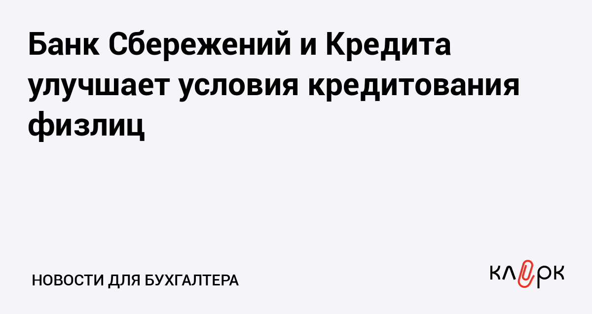 Банк Сбережений и Кредита улучшает условия кредитования физлиц