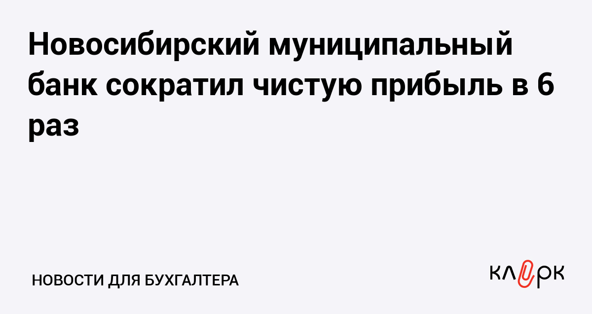Новосибирский муниципальный банк сократил чистую прибыль в 6 раз