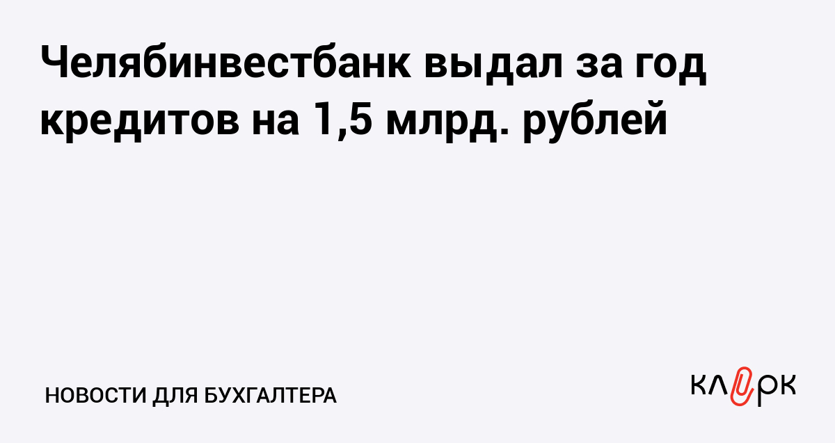 Челябинвестбанк выдал за год кредитов на 1,5 млрд. рублей