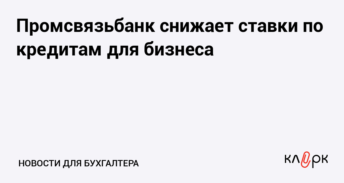 Промсвязьбанк снижает ставки по кредитам для бизнеса