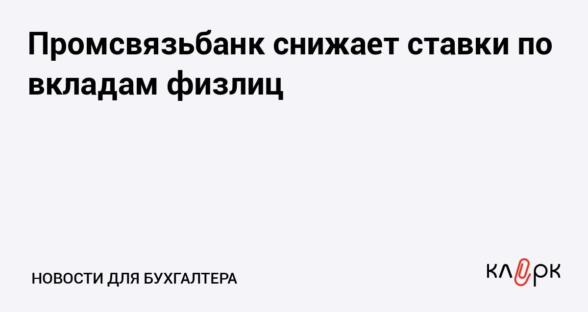 Промсвязьбанк снижает ставки по вкладам физлиц