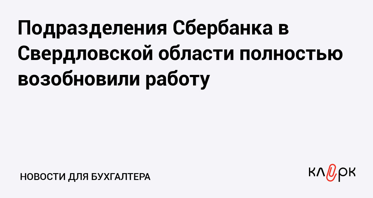 Подразделения Сбербанка в Свердловской области полностью возобновили работу