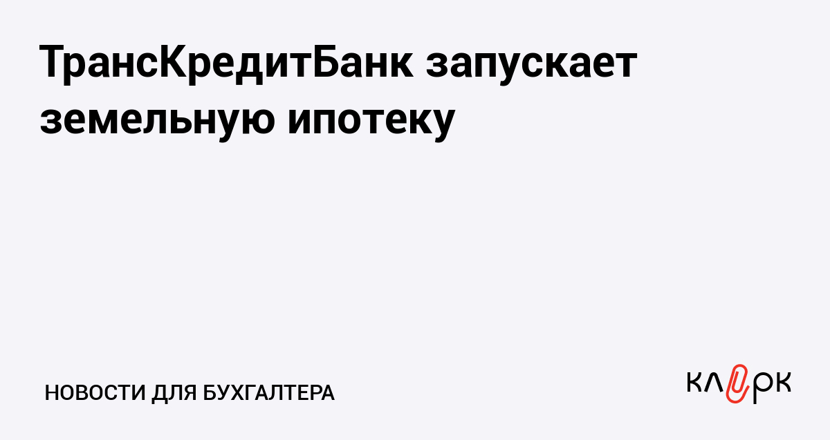ТрансКредитБанк начинает реализацию программы кредитования частных лиц на приобретение земельных участков для индивидуального жилищного или дачного строительства. Банк выдает кредиты на приобретение земельных участков в Подмосковье, продавцами которых являются ЗАО УК "Солид - Фонды недвижимости" и ООО "Кузяево-Трейд", сообщает пресс-служба ТрансКредитБанка.