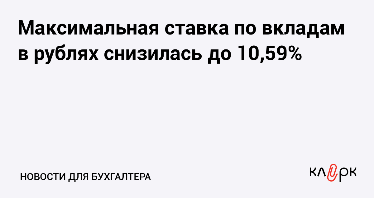 Максимальная ставка по вкладам в рублях снизилась до 10,59%