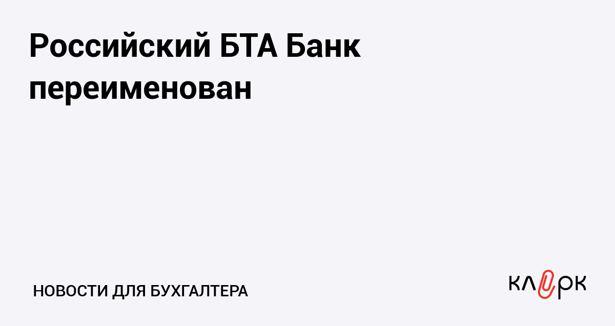 Российский БТА Банк официально переименован в АМТ Банк. 22 марта 2010 года банк получил из Московского ГТУ ЦБ РФ пакет документов с зарегистрированным новым наименованием: устав, свидетельство о внесении записи в ЕГРЮЛ в связи с государственной регистрацией и генеральную лицензию, сообщает банковская пресс-служба.