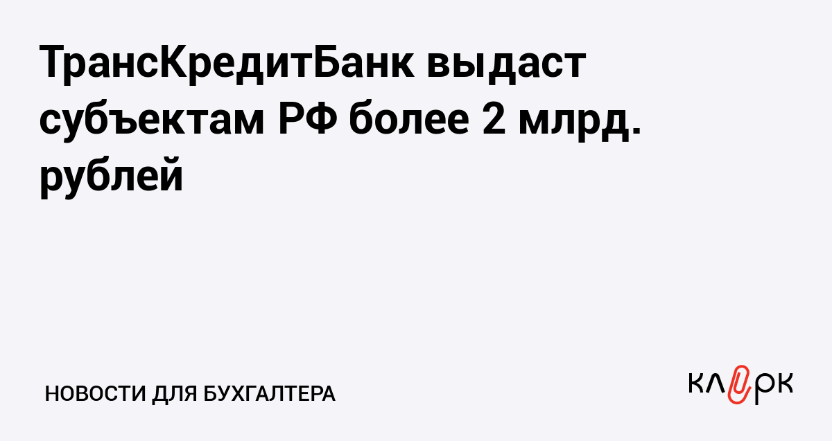 ТрансКредитБанк выдаст субъектам РФ более 2 млрд. рублей