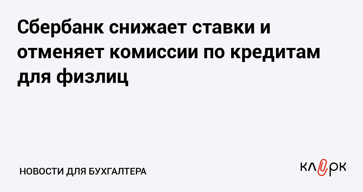 Сбербанк снижает ставки и отменяет комиссии по кредитам для физлиц
