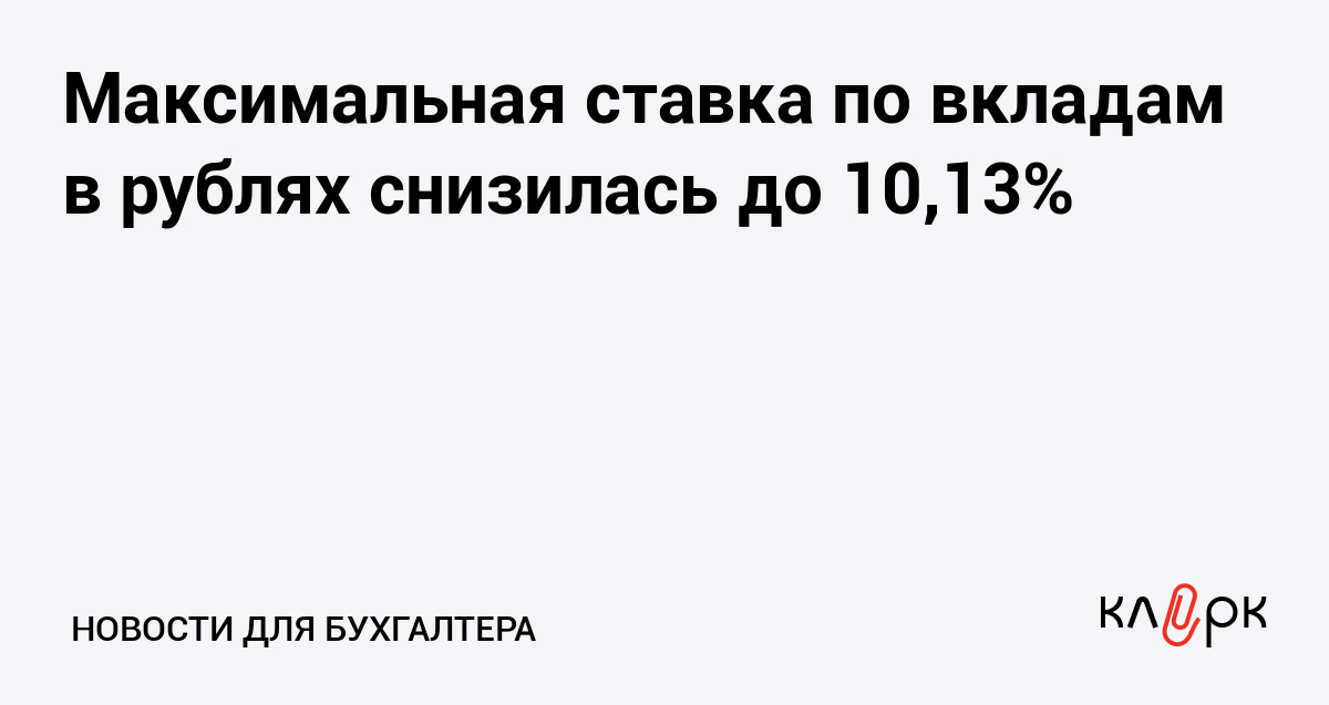 Максимальная ставка по вкладам в рублях снизилась до 10,13%