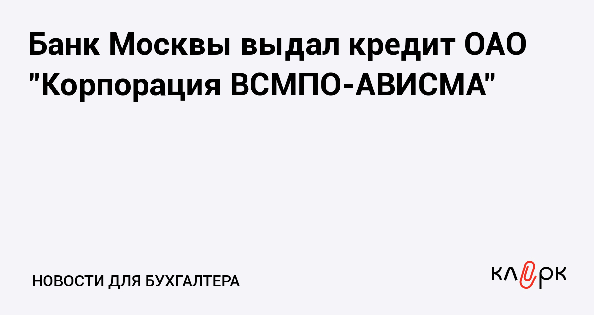 Банк Москвы выдал кредит ОАО "Корпорация ВСМПО-АВИСМА"