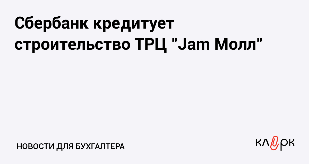 Сбербанк кредитует строительство ТРЦ "Jam Молл"