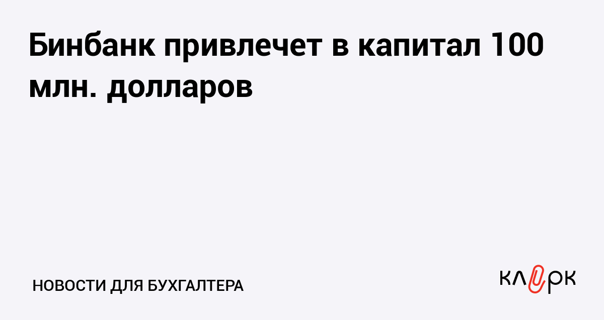 Бинбанк привлечет в капитал 100 млн. долларов