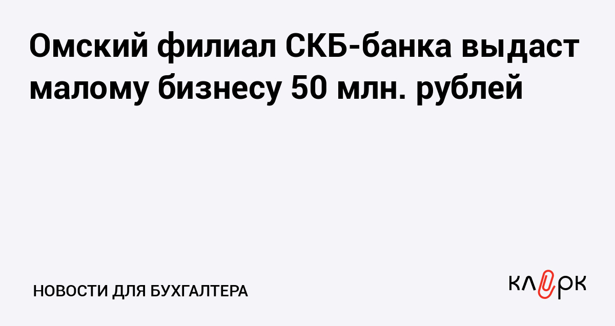 Омский филиал СКБ-банка выдаст малому бизнесу 50 млн. рублей