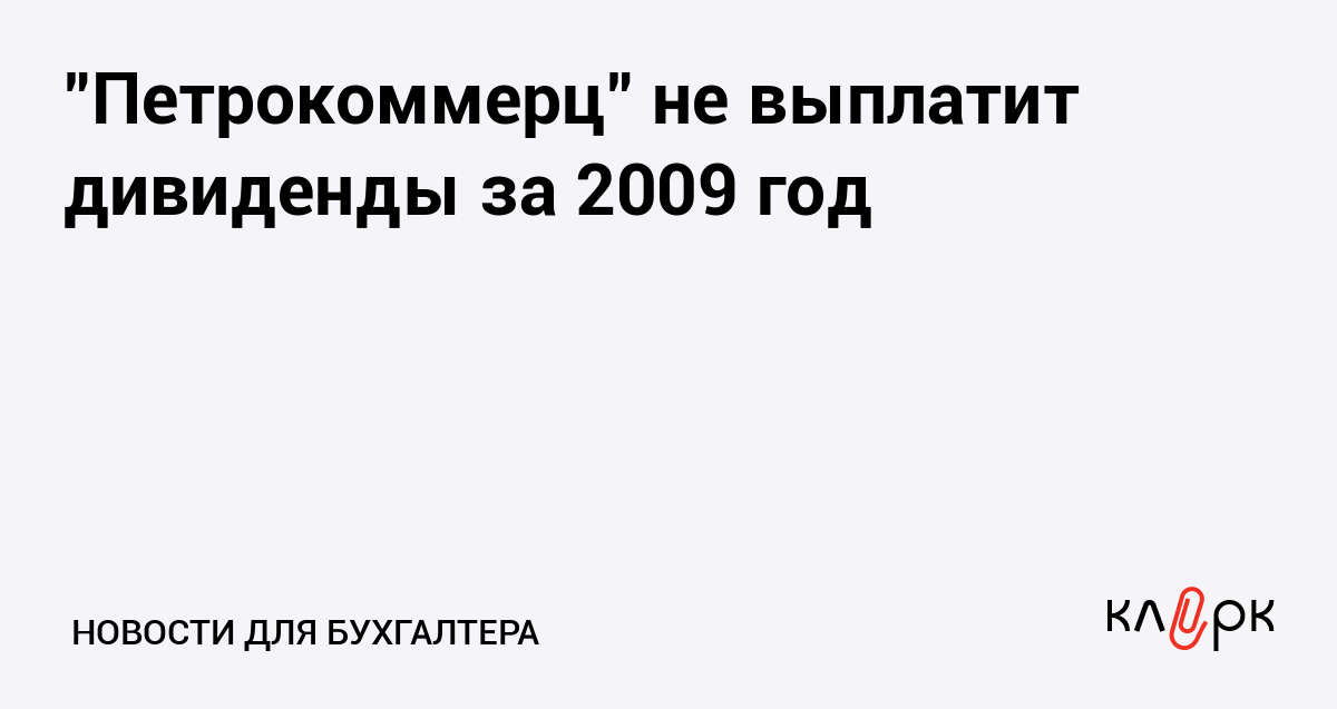 "Петрокоммерц" не выплатит дивиденды за 2009 год