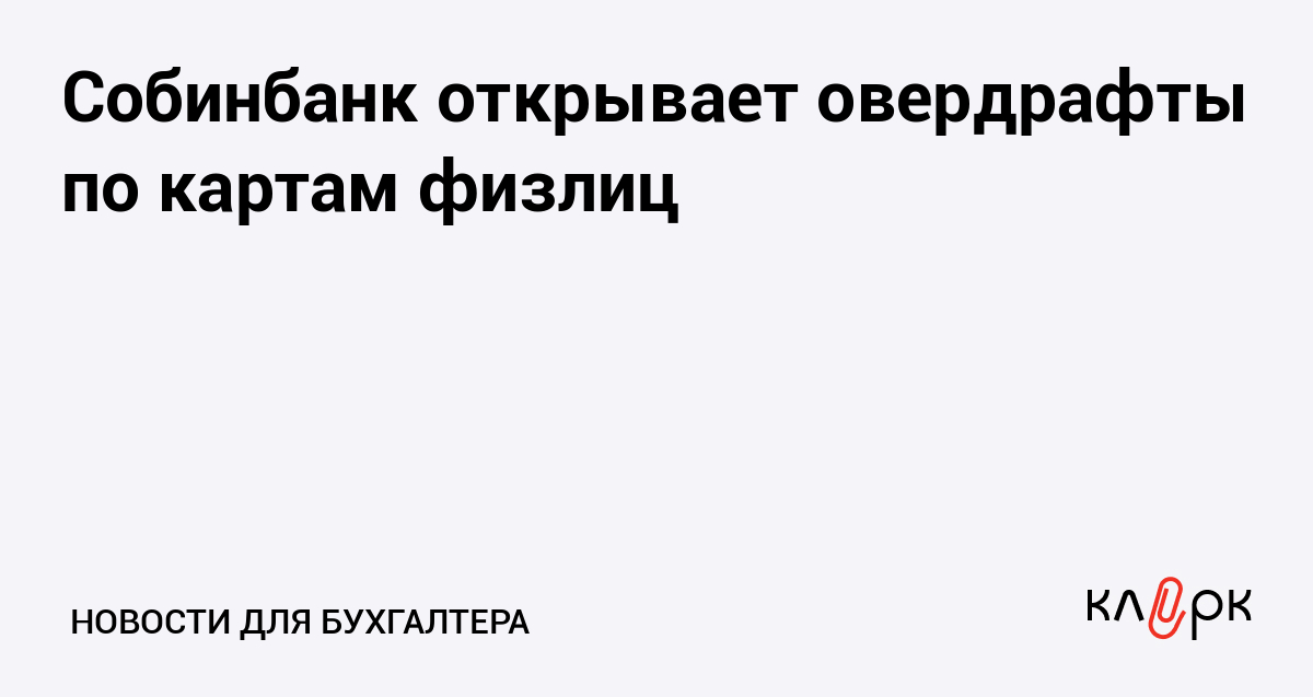 В рамках новых программ "Овердрафт для зарплатных проектов" и "Персональный овердрафт" держатели карт Собинбанка могут воспользоваться возобновляемым кредитным лимитом, предполагающим ежемесячное погашение с выплатой процентов.