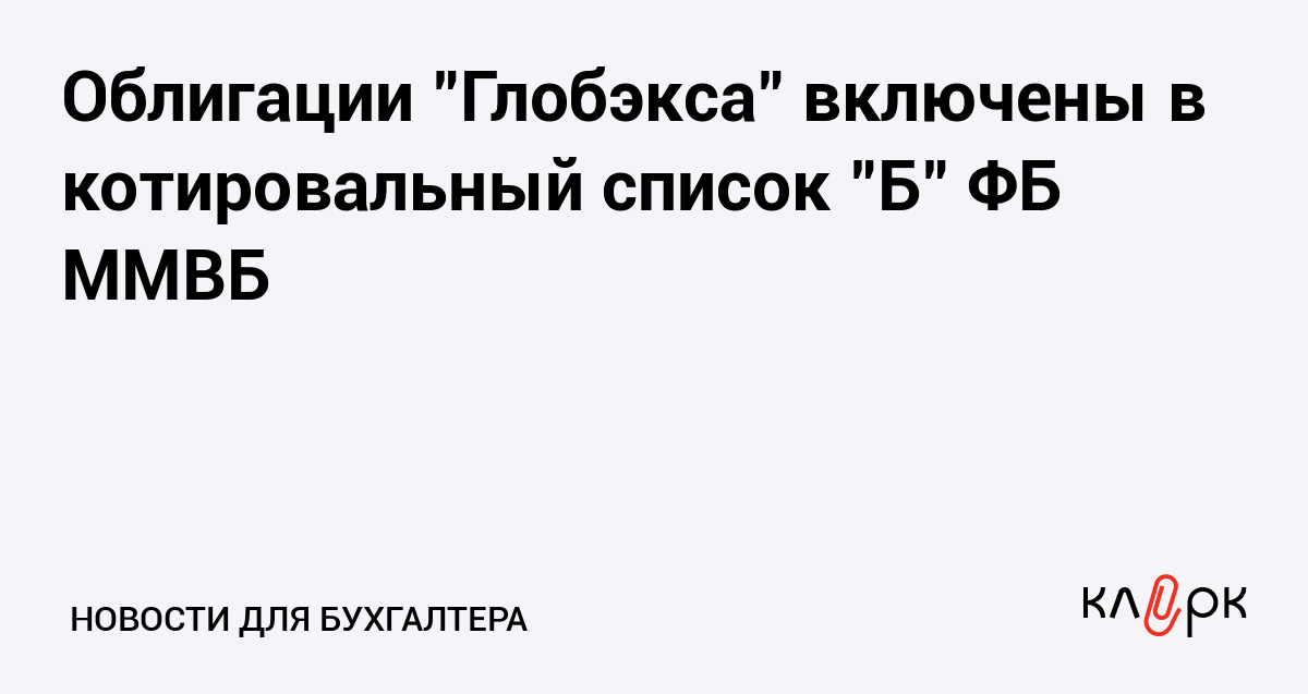 Облигации "Глобэкса" включены в котировальный список "Б" ФБ ММВБ