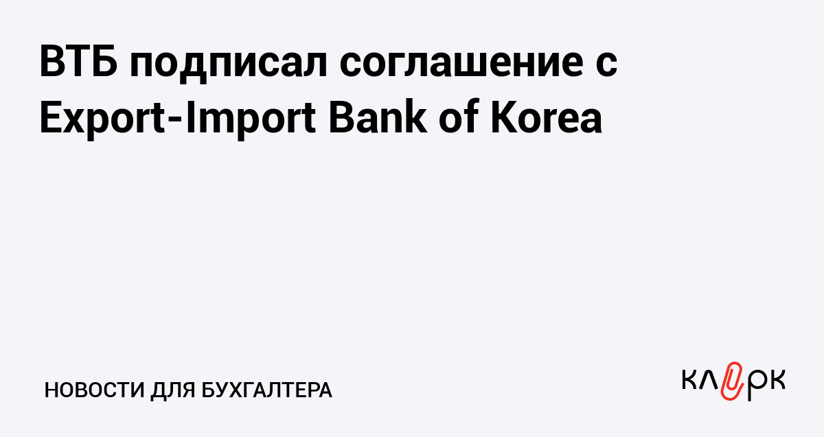 ВТБ подписал соглашение с Export-Import Bank of Korea