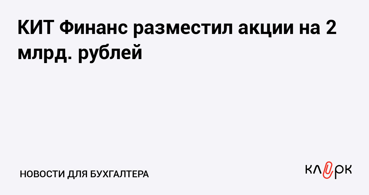 КИТ Финанс разместил акции на 2 млрд. рублей