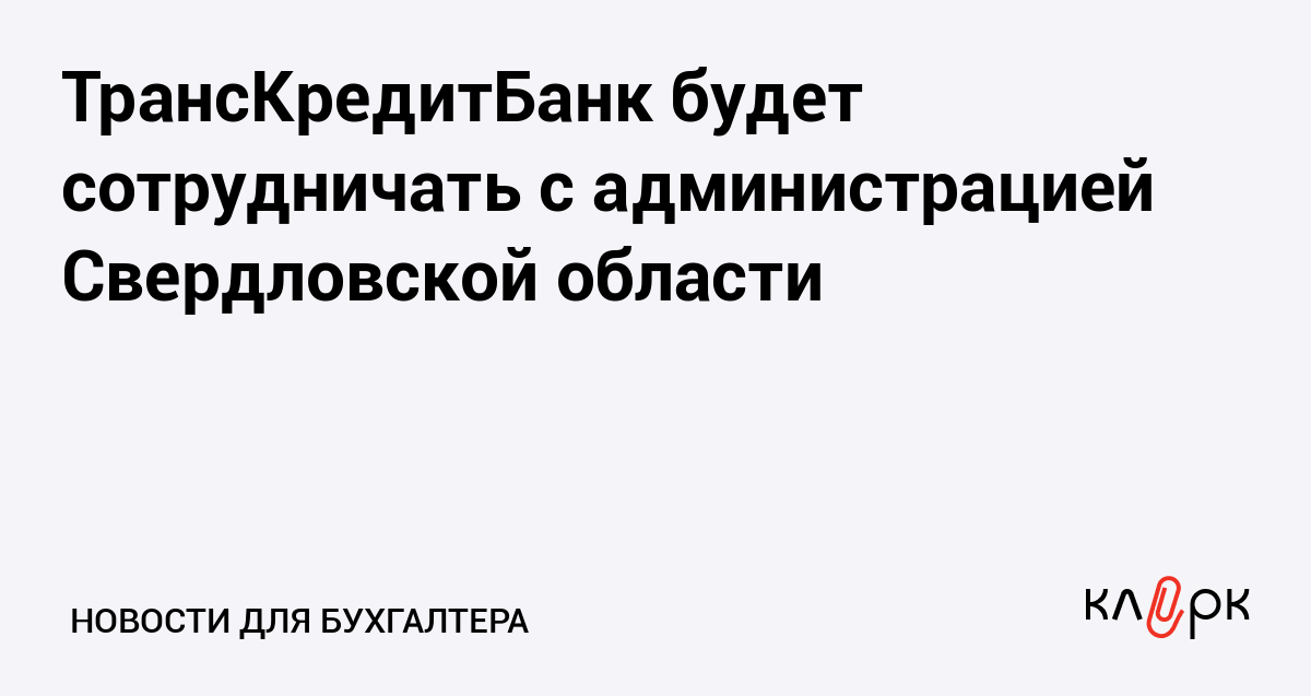 ТрансКредитБанк будет сотрудничать с администрацией Свердловской области