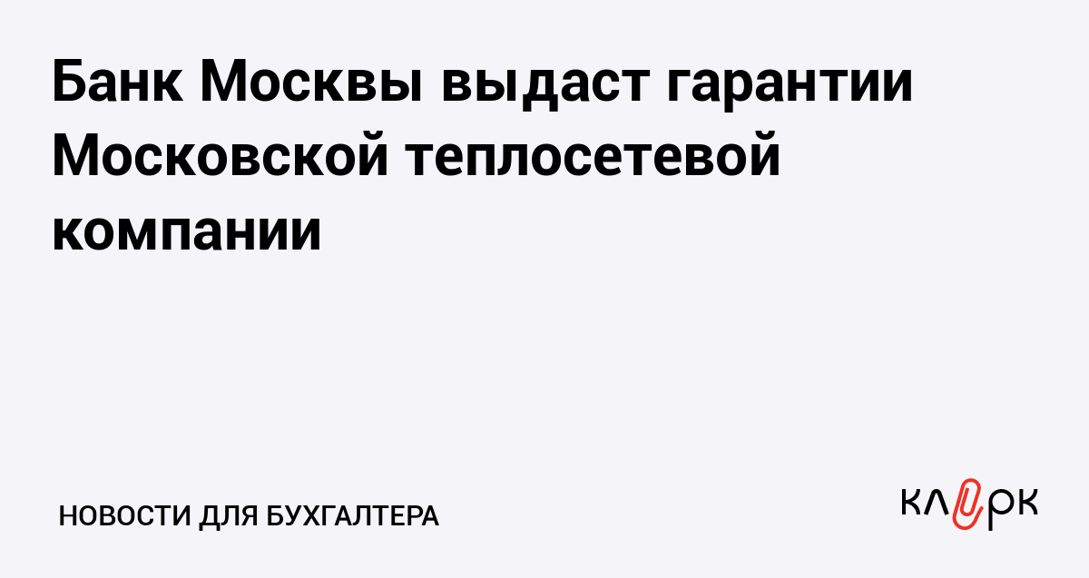 Банк Москвы выдаст гарантии Московской теплосетевой компании