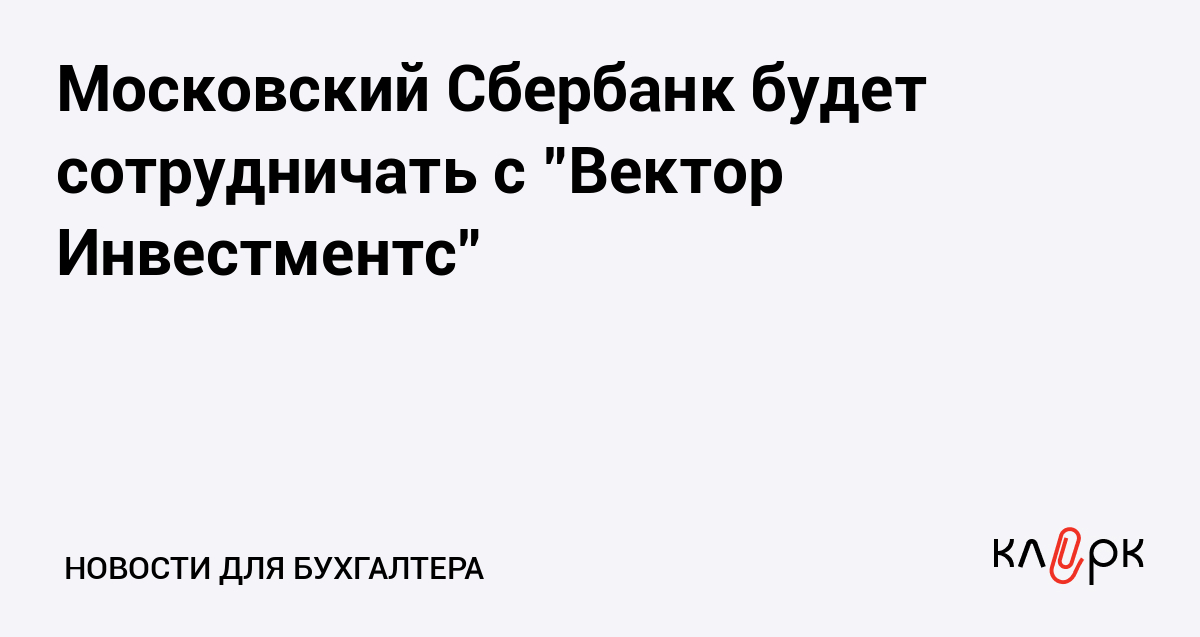 Московский банк Сбербанка России заключил договор о сотрудничестве с ООО "Вектор Инвестментс".