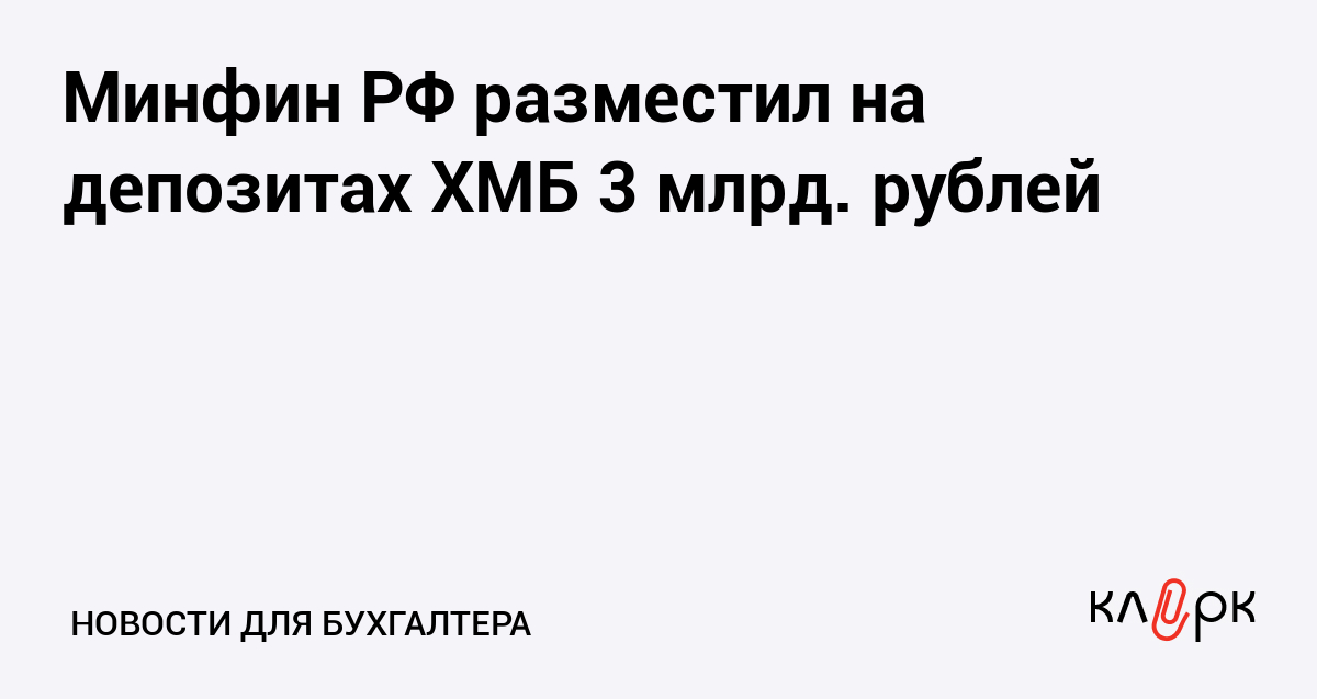 Минфин РФ разместил на депозитах ХМБ 3 млрд. рублей