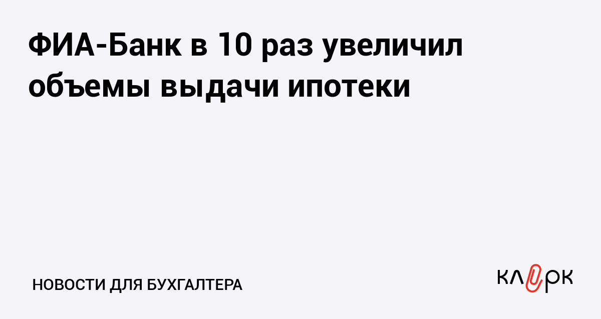 ФИА-Банк в 10 раз увеличил объемы выдачи ипотеки