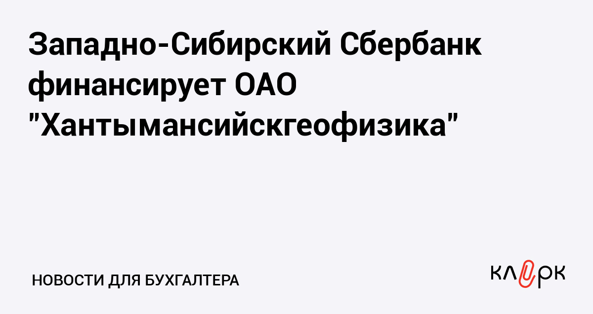 Западно-Сибирский Сбербанк финансирует ОАО "Хантымансийскгеофизика"