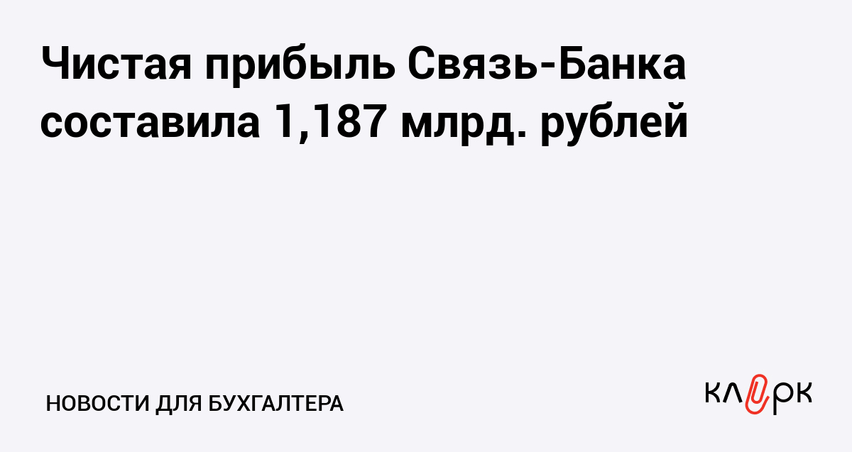 Чистая прибыль Связь-Банка составила 1,187 млрд. рублей