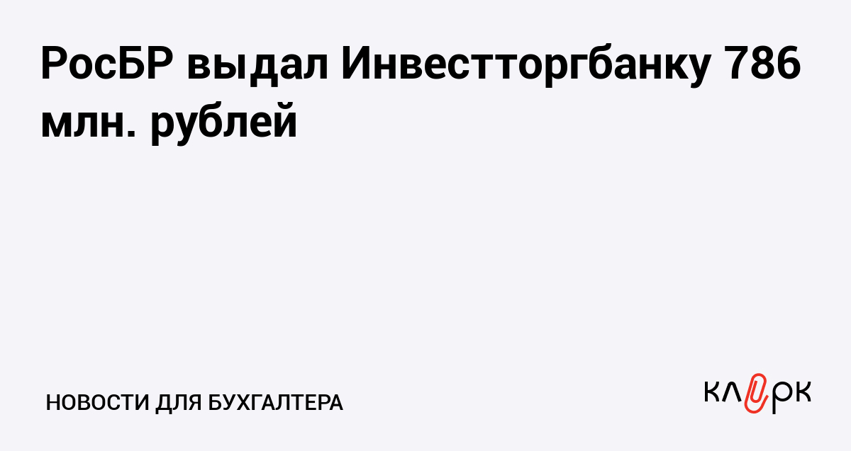 РосБР выдал Инвестторгбанку 786 млн. рублей