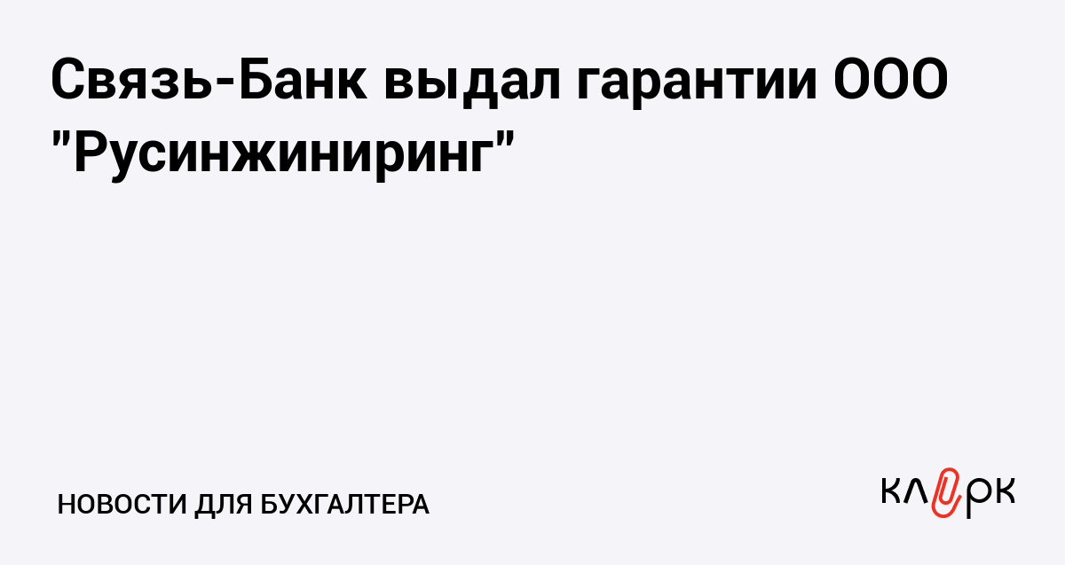 Связь-Банк выдал гарантии ООО "Русинжиниринг"