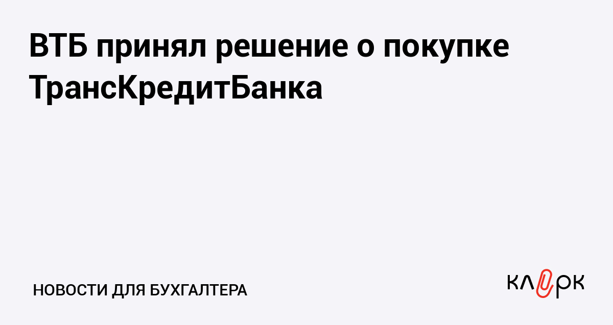 4 октября 2010 года состоялось заседание наблюдательного совета ОАО Банк ВТБ, на котором было одобрено решение о поэтапном приобретении 100% акций ОАО "ТрансКредитБанк".