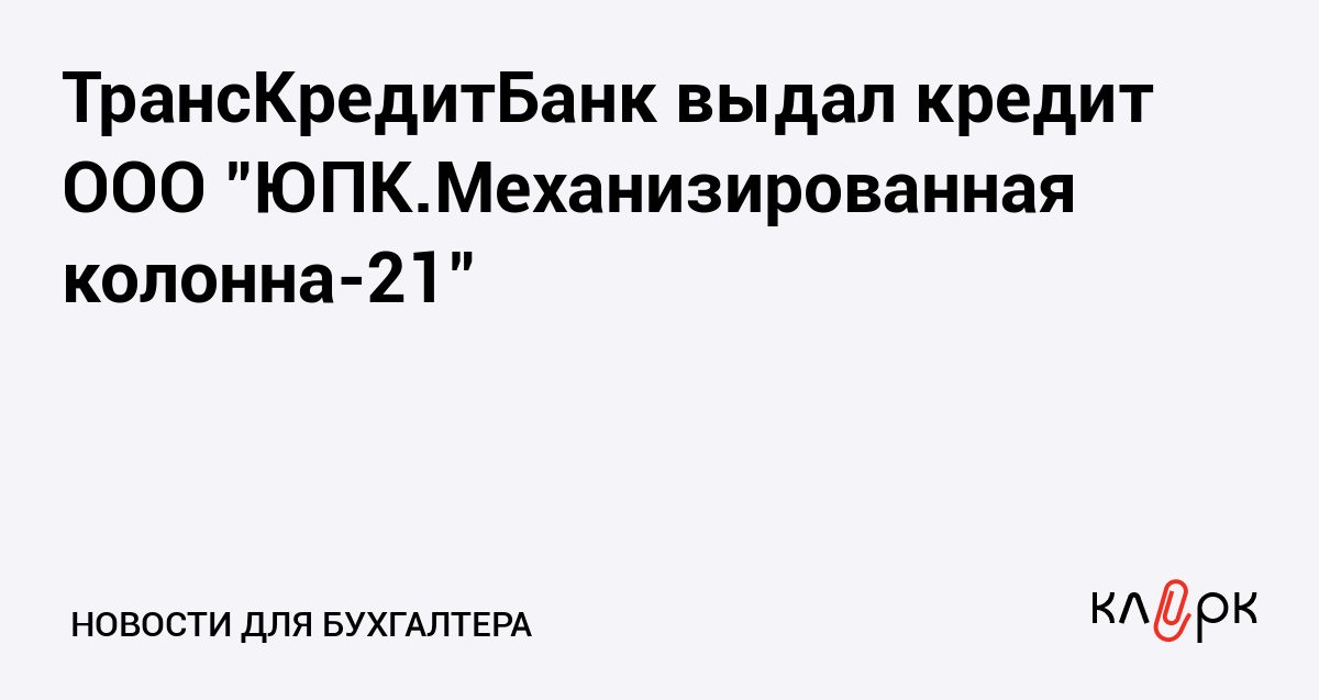 ТрансКредитБанк выдал кредит ООО "ЮПК.Механизированная колонна-21"