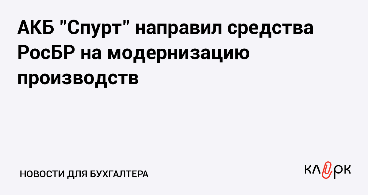 АКБ "Спурт" направил средства РосБР на модернизацию производств