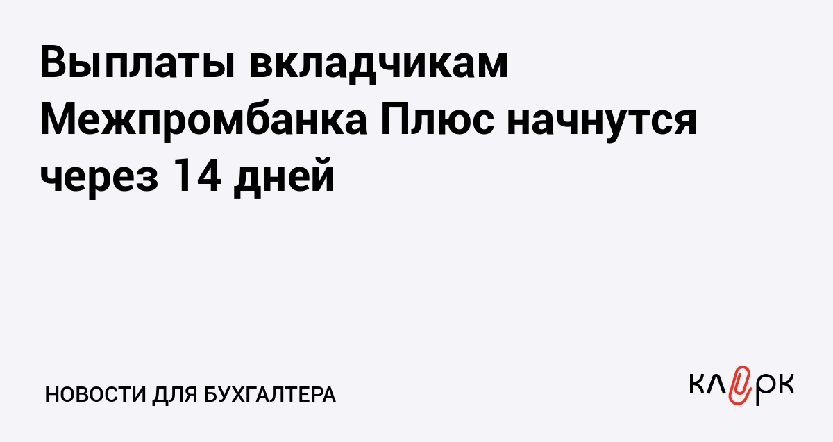 Выплаты вкладчикам Межпромбанка Плюс начнутся через 14 дней