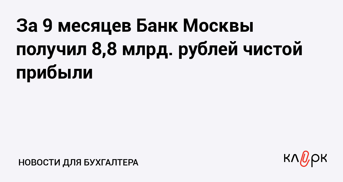 За 9 месяцев Банк Москвы получил 8,8 млрд. рублей чистой прибыли