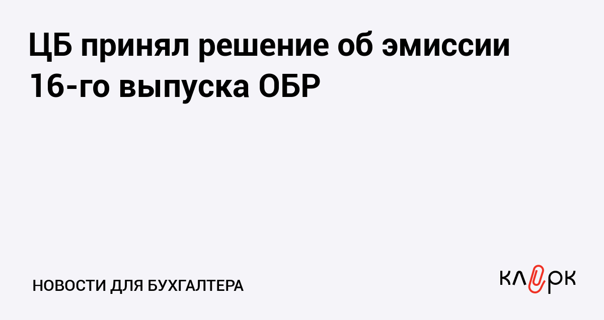 ЦБ принял решение об эмиссии 16-го выпуска ОБР