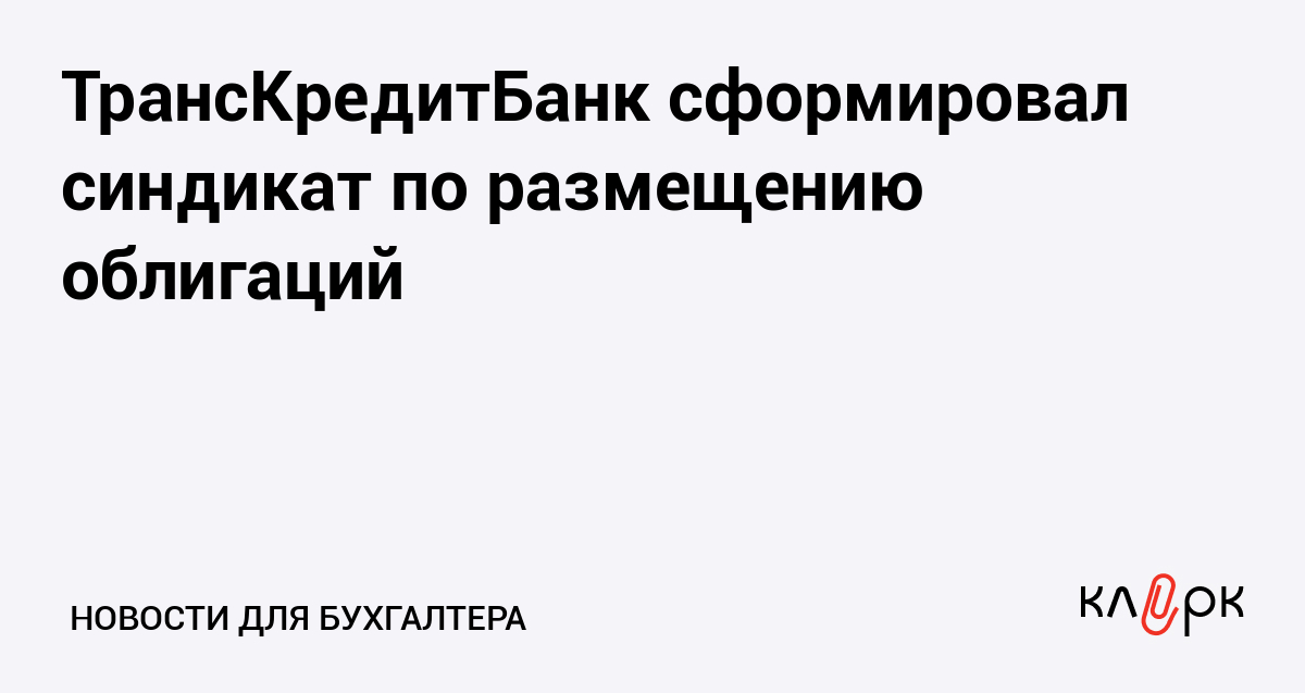 ТрансКредитБанк сформировал синдикат по размещению облигаций