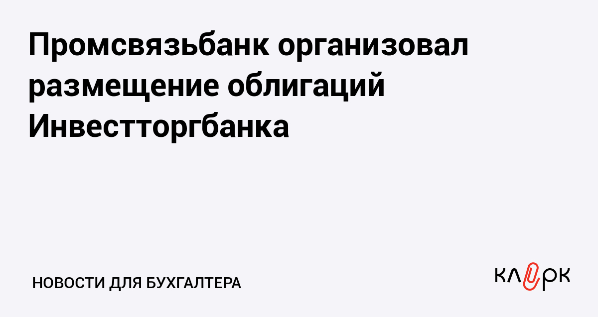Промсвязьбанк организовал размещение облигаций Инвестторгбанка