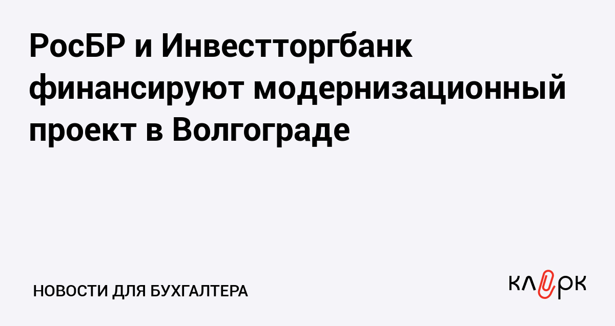 РосБР и Инвестторгбанк финансируют модернизационный проект в Волгограде