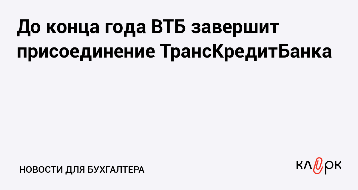 До конца года ВТБ завершит присоединение ТрансКредитБанка
