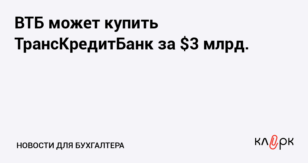 ВТБ может купить ТрансКредитБанк за $3 млрд.
