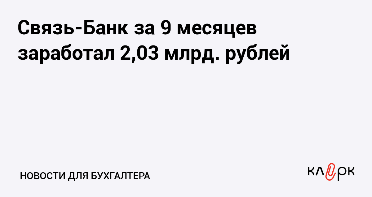 Связь-Банк за 9 месяцев заработал 2,03 млрд. рублей