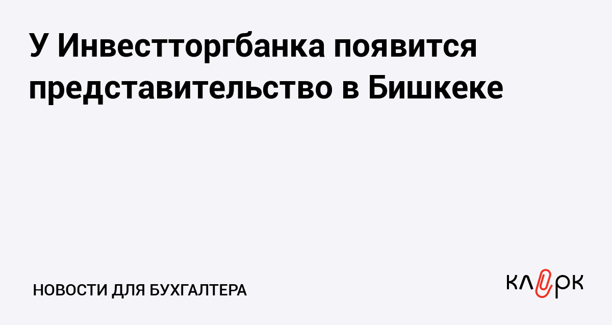 Совет директоров Инвестторгбанка принял решение об открытии представительства в столице Кыргызстана.
