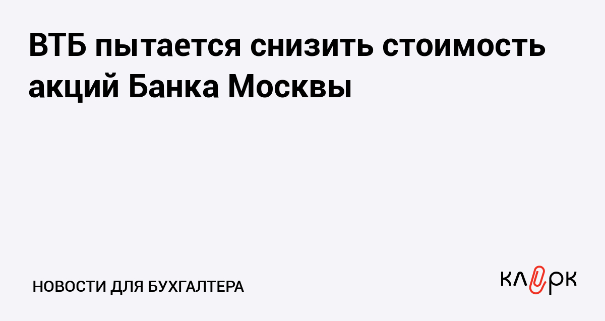ВТБ пытается снизить стоимость акций Банка Москвы