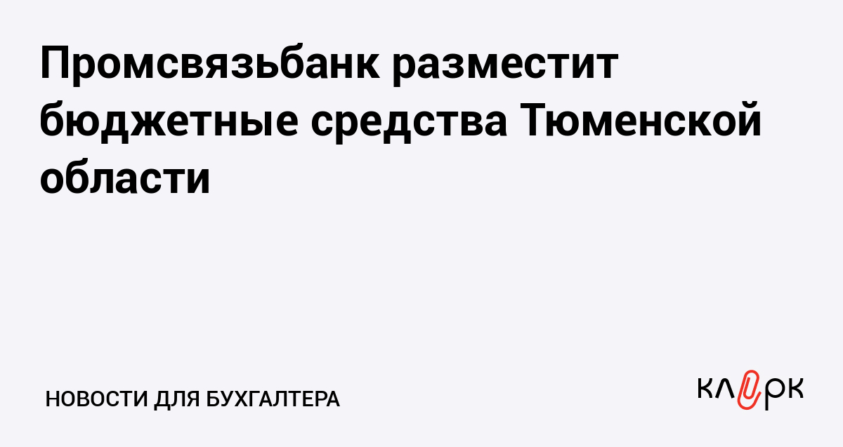 Промсвязьбанк стал победителем открытого конкурса на размещение средств бюджета Тюменской области. Помимо Промсвязьбанка победителями конкурса на размещение бюджетных средств также стали Сбербанк России, Газпромбанк, Ханты-Мансийский банк, Альфа-Банк, ВТБ, Уралсиб.