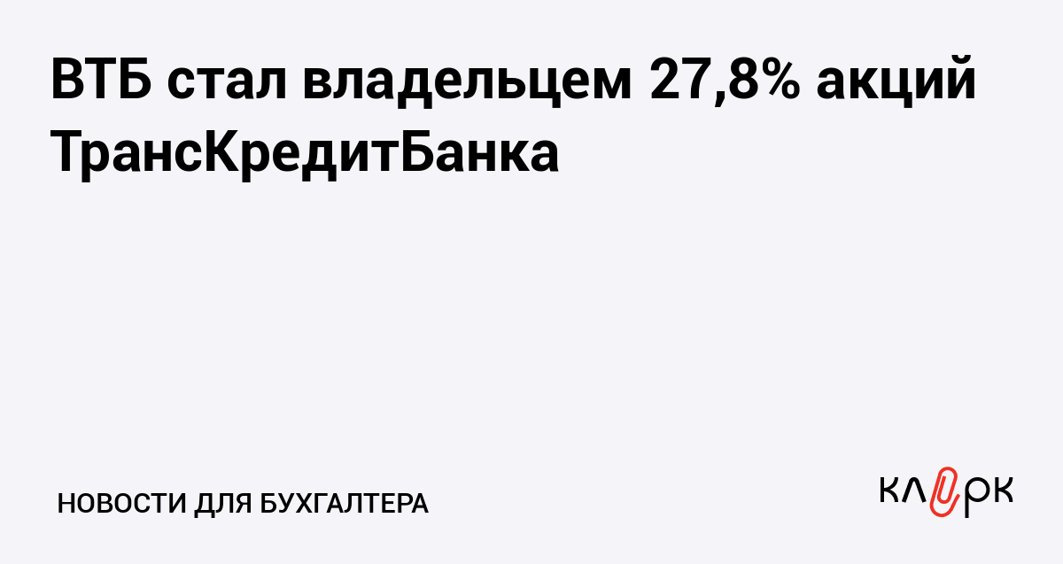 Банк ВТБ купил 27,8% акций ТрансКредитБанка у миноритарных акционеров. Пакет был приобретен в два этапа - ВТБ купил 9,8321% акций, а затем увеличил свою долю до 27,8314%.
