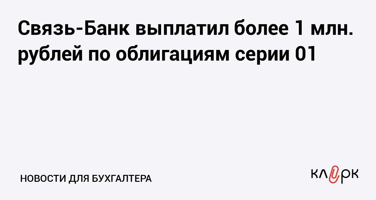 Связь-Банк выплатил более 1 млн. рублей по облигациям серии 01