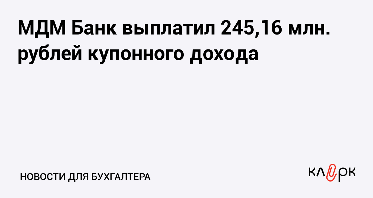 МДМ Банк выплатил 245,16 млн. рублей купонного дохода
